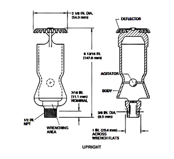 The design of the Model B-1 Foam-Water Sprinklers incorporates a distinctive venturi-style body. As the foam solution, which is a mixture of water and foam concentrate, enters the body through the inlet, a phenomenon known as the venturi effect comes into play. This effect draws air into the body through the openings near the wrenching area. The combination of foam solution and air undergoes agitation, resulting in the formation of air-aspirated foam.