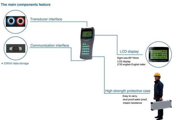 Gulf Oil and Gas International with its rich manufacturing experience offers handheld ultrasonic flow meter. It is designed to measure the fluid velocity of liquid within a closed conduit. This is done by using clamp-on sensors which non-intrusively generate and receive ultrasonic waves. It measures liquid flow rate by calculating the difference between transit time of ultrasonic wave downstream and upstream of liquid.